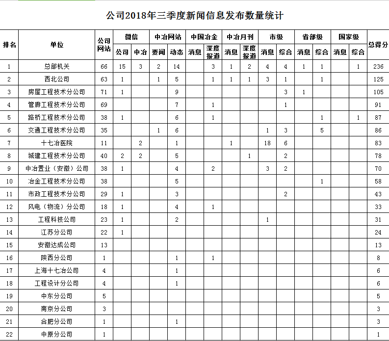 公司2018年三季度新聞信息發(fā)布數(shù)量統(tǒng)計