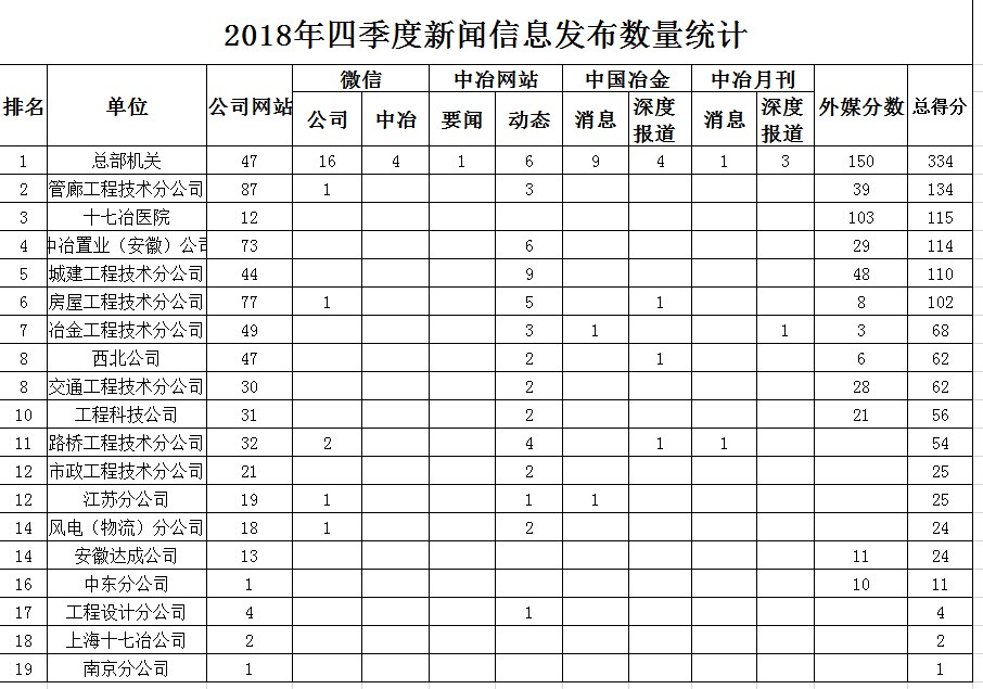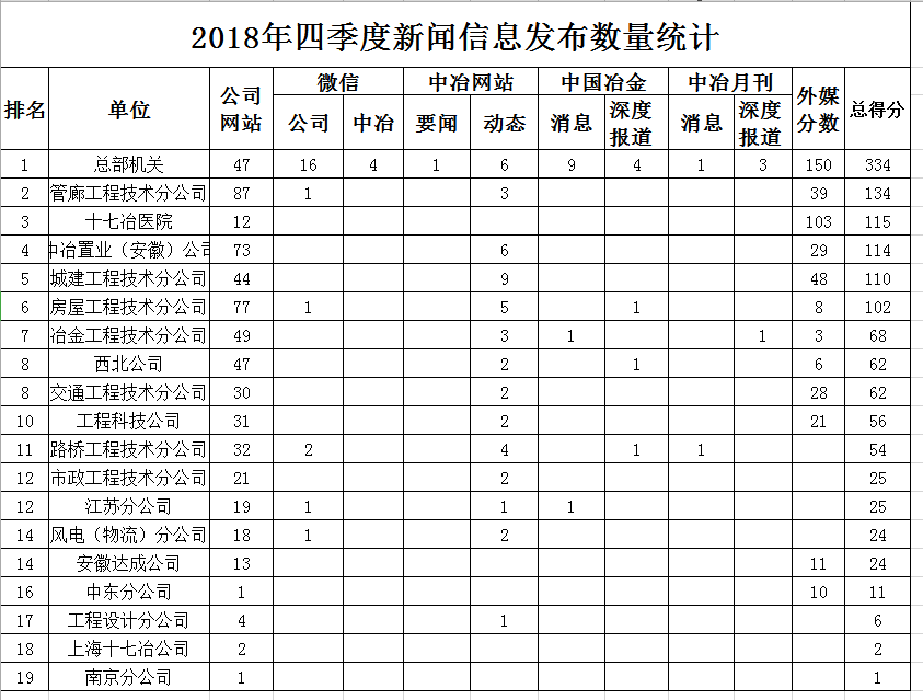 2018年四季度新聞信息發布數量統計