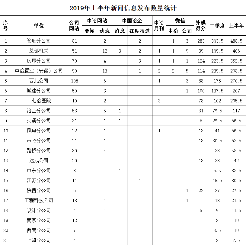 2019年上半年新聞信息發(fā)布數(shù)量統(tǒng)計(jì)
