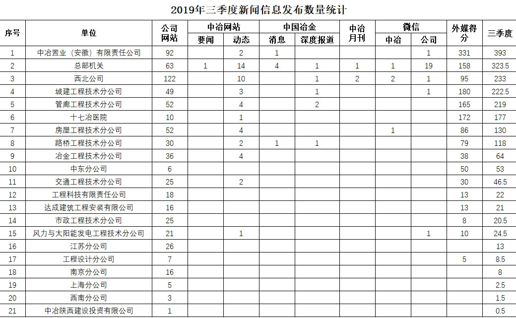 2019年三季度新聞信息發布數量統計