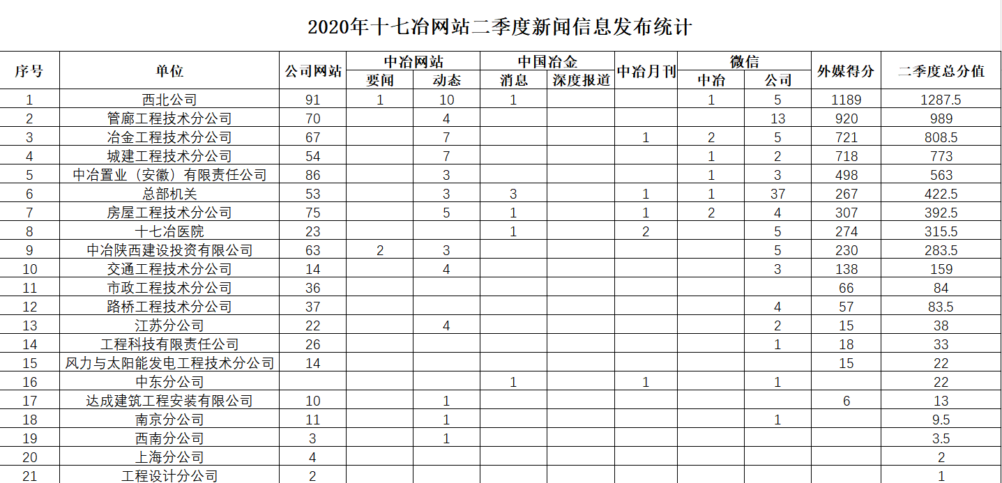 2020年二季度新聞信息發(fā)布數(shù)量統(tǒng)計