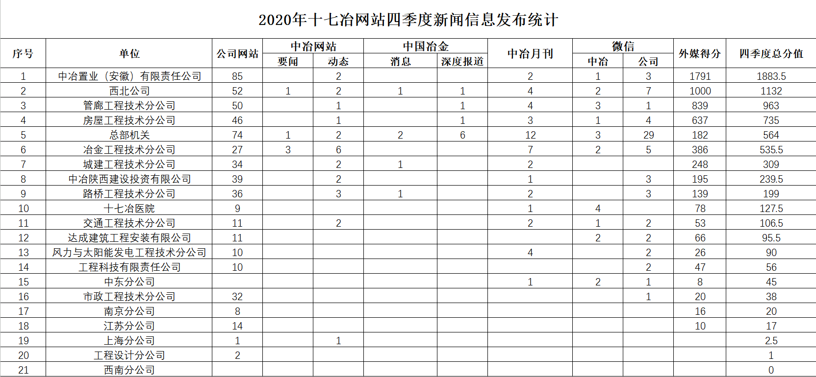 2020年四季度新聞信息發布數量統計