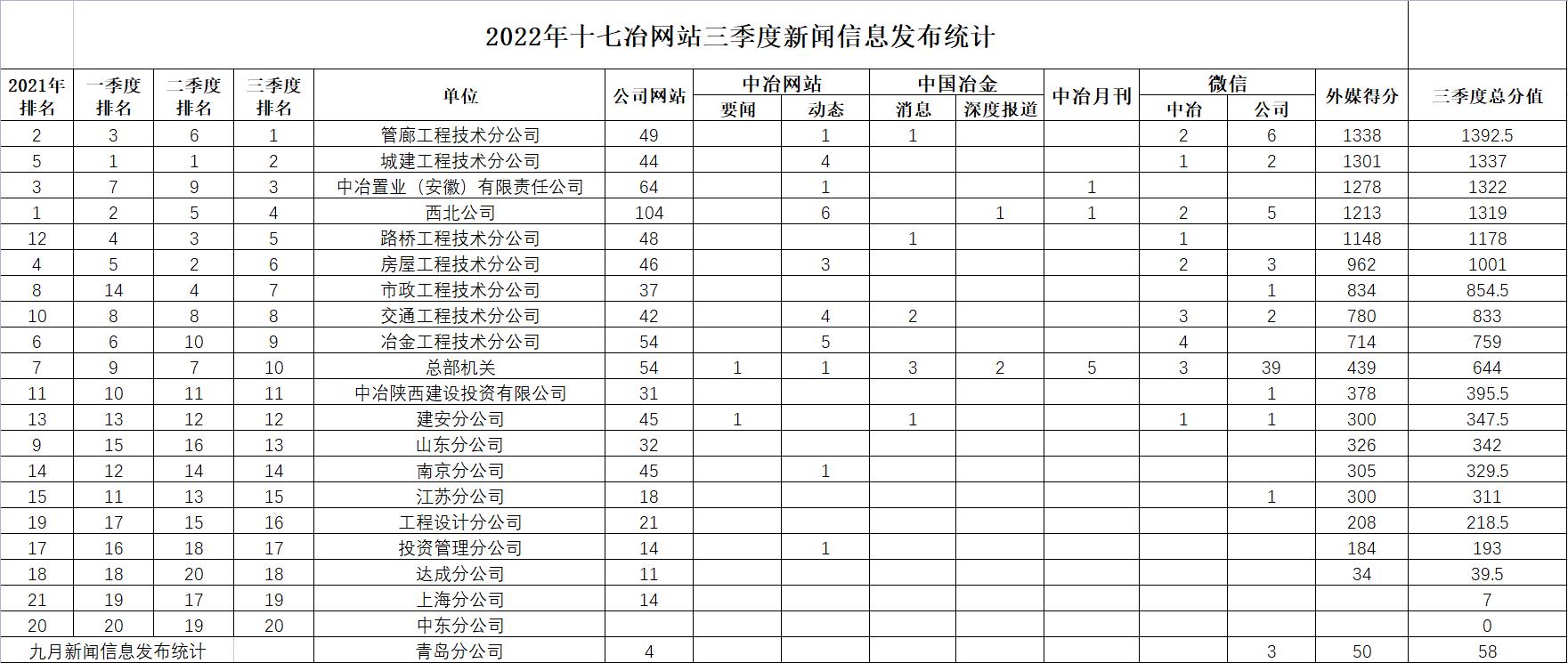 2022年三季度新聞信息發(fā)布數(shù)量統(tǒng)計