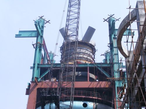 該工程由十七冶承建,高爐爐殼及本體鋼結(jié)構(gòu)、設(shè)備由十七冶機(jī)電公司機(jī)裝四處承擔(dān)安裝任務(wù).自開工以來,十七冶公司調(diào)集精兵強(qiáng)將,采用先進(jìn)技術(shù)裝備,經(jīng)過精心組織、科學(xué)施工、攻堅克難,取得顯著成效。施工人員憑借豐富的施工經(jīng)驗、過硬的技術(shù)、雄厚的實力,以百倍的熱情投入到施工當(dāng)中,加班加點,無論烈日當(dāng)頭還是皓月懸空,施工現(xiàn)場總是閃耀著工人們勤勞的焊花。在短短幾個月時間內(nèi),完成高爐爐殼制作安裝、冷卻壁安裝試壓、高爐本體框架結(jié)構(gòu)制作安裝、各類介質(zhì)管道安裝等多項施工任務(wù),目前正在為高爐按期順利投產(chǎn)做積極準(zhǔn)備,受到各級領(lǐng)導(dǎo)一致好評。此外,十七冶九鋼項目部在安全、質(zhì)量以及其他各項管理工作中得到了業(yè)主和總包單位的好評。