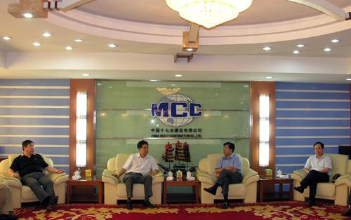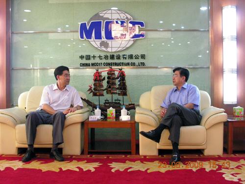 6月23日下午,中國機械設備進出口總公司(CMEC)總裁賈志強、中國機械設備進出口總公司第六事業部總經理尹志新,在馬鞍山市副市長鄭超陪同下來十七冶訪問,十七冶董事長、黨委書記康承業在公司總部親切會見了CMEC總裁賈志強一行,賓主進行了熱情、誠摯、友好地會談。