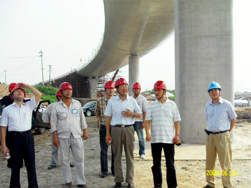 徐學軍副廳長、張大春站長認真視察了濱江大道淮河路NE定向匝道橋、下沉式地道、路面二灰碎石等項目的施工,對濱江大道1.1標的工程質量、進度、安全和施工現場的文明施工給予充分肯定,并對本工程提出了結構可靠、節能環保、安裝規范、裝飾精巧、完善資料等五個方面“確保省優,爭創國優”的具體施工目標。
