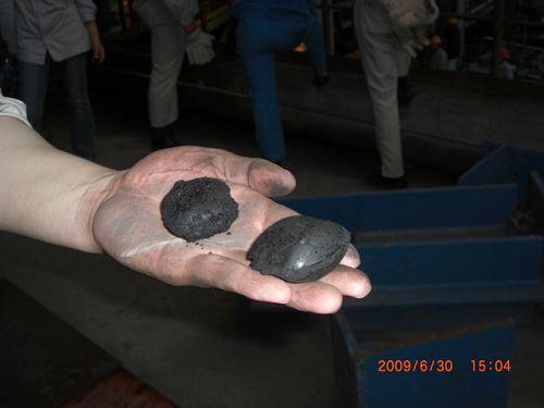 下午14點25分,一切準備就緒。隨著指揮長一聲令下“開機投料”。頓時,配灰室攪拌機、皮帶輸送機、壓塊機依次啟動并發出隆隆的機械轉動聲,大約不到3分鐘的時間,一個個成型的、烏光錚亮的煤壓塊從壓機內滾動而出。頓時,人們開始激動起來,有的相互握手;有的捧著壓塊傳遞觀賞;有的則拿著相機相互拍照,留下難忘的記憶。煤壓塊壓機經過約20分鐘的運轉,一切正常,即宣告試壓成功。浦鋼公司副總經理、工程指揮部總指揮長吳章維、煉鐵廠副廠長高輝也親臨現場觀看了整個出塊過程,并向十七冶浦鋼羅涇二步工程項目經理鐘華彪表示祝賀。
