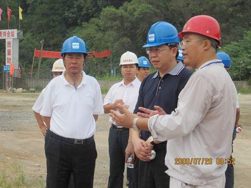 7月26日上午,中國冶金科工股份有限公司副總裁王秀峰、產業管理部部長李健在中冶交通董事長兼總經理殷學智、中冶(廣西)馬梧高速公路建設發展有限公司總經理張志勇、副總經理時章明、總工崔君蒲及監理公司相關部門領導的陪同下,冒著高溫來到十七冶廣西馬梧高速路面工程項目部進行視察和慰問。