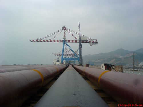 項目部根據(jù)鋼管樁加工制作工藝,選擇好12個質(zhì)量控制點,從下料開始一直到碼頭安裝組對探傷,每一個控制點都要求有專門的監(jiān)管人員,保持施工質(zhì)量控制點的受控狀態(tài),并且每天下午集中進行總結。項目部人員的全部工作下移到現(xiàn)場,組織好2個車間共178名職工拼搶工程進度,同時抓好現(xiàn)場的文明施工,每星期進行一次安全文明大檢查,強化施工現(xiàn)場安全監(jiān)管工作。現(xiàn)場共設置10個安全控制點,懸掛好企業(yè)文化和安全標語牌,營造出大干氛圍。