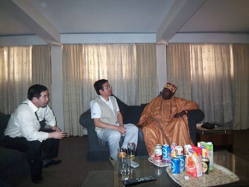 與尼日利亞當(dāng)?shù)厍蹰L親切交談