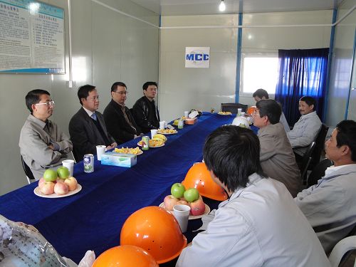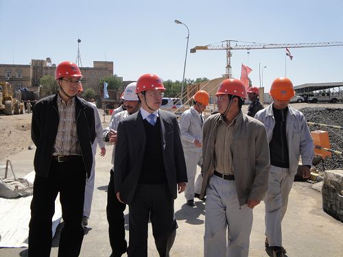 劉登林大使一行對項目經理部辦公、生活、及現場進行了實地考察,對不遠萬里、境外創業的項目部員工表示親切的慰問。在聽取了項目經理部關于工程項目目前情況的匯報后,劉大使對項目經理部的基地建設給與了充分肯定,介紹了目前國內公司在也門市場的總體形勢,并對項目部今后加強與業主和國外監理的溝通和聯系、加強內部管控、做好工程項目、規避經營風險等方面提出了總體要求和建設性意見。