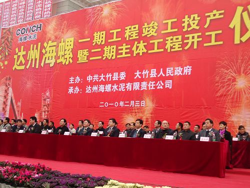 達州海螺一期工程是十七冶在川渝地區竣工投產的第一條水泥熟料生產線,自2008年12月底開工以來,十七冶水泥工程公司經過一年多艱苦不懈的努力,克服地質復雜、物資設備難進場等重重困難,以優質、高效回報業主,確保該工程如期竣工。典禮上,達州市領導對工程進度和質量給予了充分的肯定,業主單位也給予了高度評價。