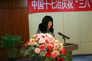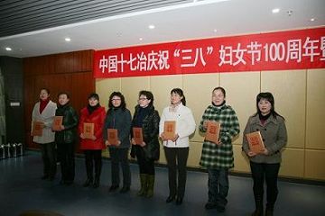 馬鞍山市婦聯副主席喻曉明代表市婦聯向十七冶姐妹們致以節日的問候。她說,十七冶女員工為十七冶的發展付出了艱辛與汗水,充分發揮了“半邊天”的作用。她希望十七冶女員工勤奮學習,提高素質;立足崗位,建功立業;關愛家庭,奉獻社會,固本強基,共創未來,爭做勇挑重擔的知識型女員工。