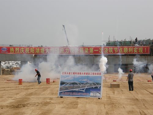 6月18日下午2:58分,十七冶工程管理公司承建的陽(yáng)湖塘大橋的施工現(xiàn)場(chǎng),隨著項(xiàng)目經(jīng)理的一聲令下,在鞭炮齊鳴、禮花四射的呼嘯聲中,伴著眾人的一片歡呼,經(jīng)過(guò)晝夜奮戰(zhàn)的陽(yáng)湖塘大橋箱梁C50砼終于開(kāi)始第一次澆筑,這標(biāo)志著陽(yáng)湖塘大橋又一個(gè)重大節(jié)點(diǎn)的順利實(shí)現(xiàn),并全面進(jìn)入流水作業(yè)階段,為年底主線貫通目標(biāo)奠定了基礎(chǔ)。