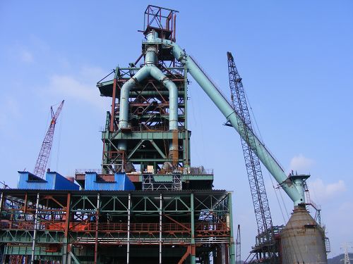 88下午,十七冶承建的九鋼4#高爐下降管吊裝順利就位。這標志著高爐本體大件吊裝結束,大型吊車的轉場。