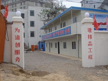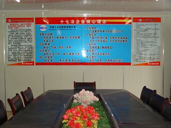 項目部大門樓建設特色鮮明,起點高、企業文化元素體現充分;五牌兩圖長達16米,高4米,并配制宣傳櫥窗展示企業業績,全部實行亮化,很有氣勢。白天、夜晚成了蕪湖市過往行人駐足觀摩的焦點,市建委及海螺業主稱贊說:“十七冶不愧為國有大企業,辦事情、做工程,大手筆,而且規范化,為蕪湖施工企業樹立了榜樣”。