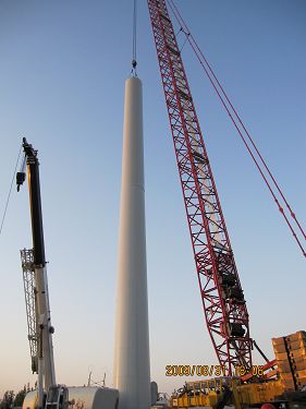 這次開工的風(fēng)電項(xiàng)目共由13臺維斯塔斯V90—1.8MW/2.0MW風(fēng)力發(fā)電機(jī)組組成。主要包括塔筒、機(jī)艙、葉輪吊裝;風(fēng)力發(fā)電機(jī)組內(nèi)部電纜敷設(shè)、電纜頭制作、環(huán)網(wǎng)柜安裝、試驗(yàn)調(diào)試及連接;光纜敷設(shè)、光纜接頭制作接地等。