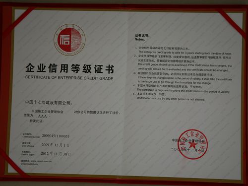 日前,中國(guó)施工企業(yè)管理協(xié)會(huì)對(duì)十七冶信用等級(jí)進(jìn)行了評(píng)估,經(jīng)過(guò)對(duì)各方面信譽(yù)審查后,授予十七冶“企業(yè)信用評(píng)價(jià)AAA級(jí)信用企業(yè)”,并頒發(fā)了證書和獎(jiǎng)牌。