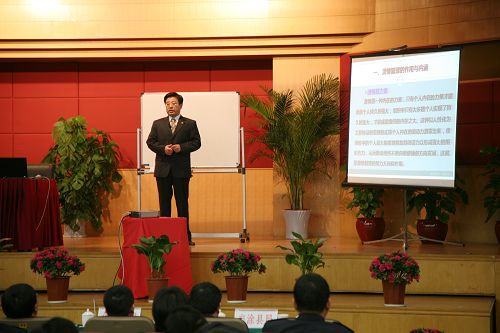 在3個多小時的講座里,康董事長運用蘊含豐富專業(yè)知識的理念和生動的案例,并結(jié)合自己多年工作經(jīng)驗以及地稅系統(tǒng)實際,從激情管理的作用與內(nèi)涵、激情的動能和外在表現(xiàn)、影響激情的規(guī)律和因素、管理和保持激情的方法等四個方面,詮釋了激情管理理論的內(nèi)涵和實踐,并就組織與個體如何在生活、工作中長久地保持激情向稅務(wù)干部作了深刻的闡述??刀麻L的激情授課贏得了稅務(wù)干部的贊譽,講座現(xiàn)場不時響起陣陣掌聲。