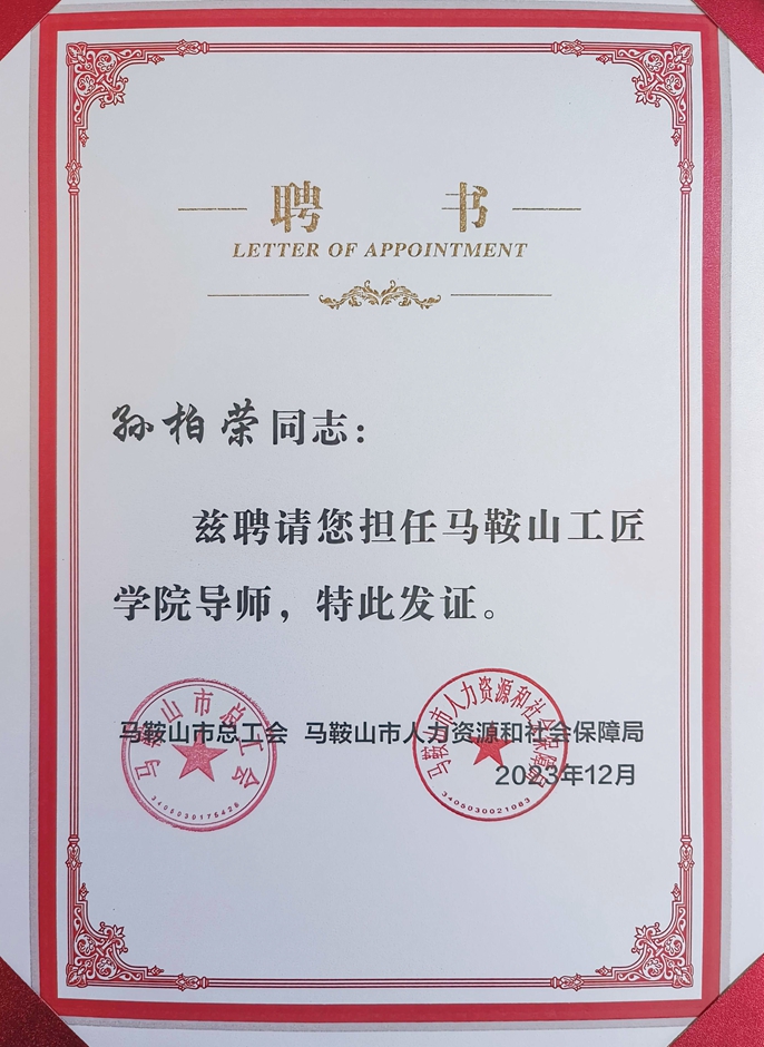 12月8日上午,馬鞍山工匠學院正式揭牌成立,馬鞍山市委常委、組織部長范奇,市人大常委會黨組副書記、副主任、市總工會主席朱來友,市政府有關領導等參加揭牌儀式。中國十七冶集團有限公司作為“馬鞍山工匠學院分院”接受市總工會授牌,中國五礦特級技師孫柏榮作為“馬鞍山工匠學院導師”接受市總工會聘書。