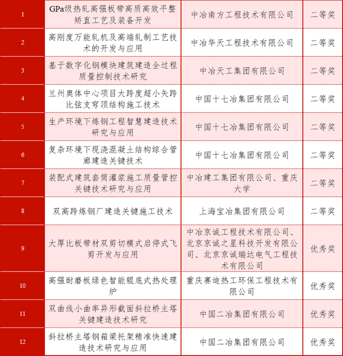 日前,中國質(zhì)量協(xié)會公布了2023年度質(zhì)量技術(shù)獎獲獎名單,中國十七冶3項成果從全國各行各業(yè)1090項成果中脫穎而出,均榮獲二等獎,年度獲獎數(shù)量位列中冶集團(tuán)(8項二等獎)首位。