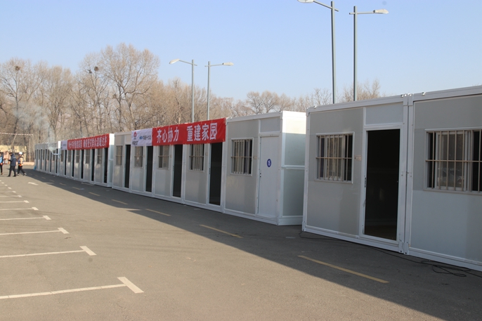 在工作隊和全體建設者的艱苦奮斗下,12月22日凌晨1點,工作隊完成民和縣喇家村第一安置點20套裝配式活動板房安裝。22日凌晨4點30分,完成官東村第三安置點官東村22套裝配式活動板房安裝。22日上午11點40分完成鮑家村第二安置點20套裝配式活動板房安裝。22日下午4:30完成民和縣喇家村第一安置點首批20間板房交接入住,首批受災群眾接過新家鑰匙,拎包入住。由于受災群眾位置分散、交通不便,工作隊又奔赴紅崖村、團結村、民主村、魏家山村等偏遠安置點,搭建剩余28套板房,截止22日晚上8:27分,100套裝配式活動板房全部建設完畢。