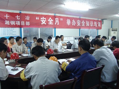 6月6日,湘鋼項目部以開展“安全生產月”活動為契機,舉辦了一期由項目部領導、兩級項目部管理人員,專職安全員和外協隊伍負責人40余人參加的安全知識培訓。