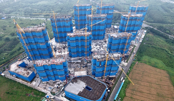 項目位于南京市浦口高新區(qū),園特路南側(cè)、智天街東側(cè)、朱家店河北側(cè)、研新路西側(cè),總建筑面積280697.58平方米。建設(shè)內(nèi)容包含9棟31層住宅樓,2棟32層住宅樓,1棟4層商業(yè)樓,1棟3層配套服務(wù)用房。此次封頂?shù)腟1#商業(yè)樓為框架結(jié)構(gòu),地上4層,建筑高度19.15米,建筑面積9221.74平方米。項目建成后可滿足2015戶居民居住、生活配套需求,完善民生設(shè)施建設(shè),為浦口區(qū)市民提供舒適、方便的居住環(huán)境。