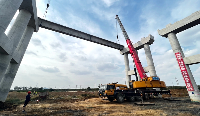 此次架設(shè)的首片箱梁為瓦日公鐵立交右幅30-4號(hào)梁板,長(zhǎng)30.1米,寬2.85米,高1.6米,重約106噸。架設(shè)前,項(xiàng)目團(tuán)隊(duì)反復(fù)研討,考慮各種工況,提前模擬施工,制定完善專(zhuān)項(xiàng)方案和應(yīng)急預(yù)案;架設(shè)過(guò)程中,架設(shè)人員分工明確、緊密配合,管理人員現(xiàn)場(chǎng)監(jiān)督、嚴(yán)格把控,確保安全可控、質(zhì)量達(dá)標(biāo)。項(xiàng)目部將全力推進(jìn)后續(xù)施工進(jìn)度,向著“大干四季度,確保年目標(biāo)”奮力沖刺。