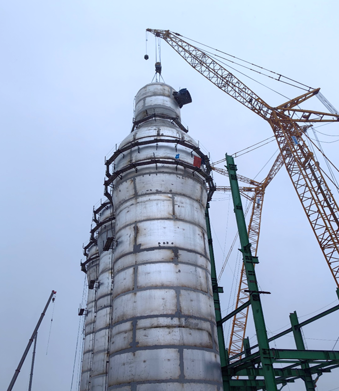 高爐熱風爐作為高爐煉鐵過程中一個關鍵的熱能供應工藝設備,主要通過燃燒燃料產生高溫熱風,然后將其輸送到高爐中,從而實現煉鐵目的。自10月1日項目1#高爐爐殼封頂以來,項目團隊以安全和質量為基礎,克服場地小、吊裝難以及連續降雨等困難,優化施工各工序作業布置、合理安排夜間施工,最終提前15天完成3#熱風爐封頂任務,為后續爐內爐窯耐材施工奠定堅實基礎。