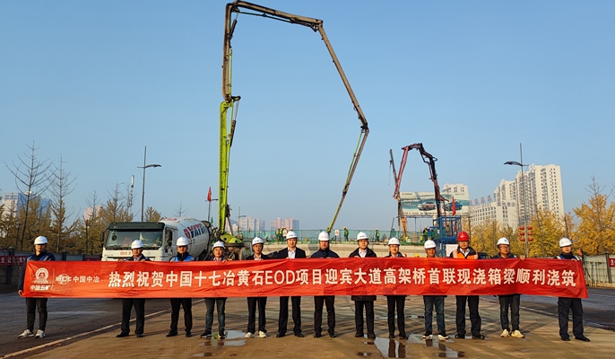 11月28日,中國十七冶承建的長江黃石段生態導向開發EOD項目——大泉路生態廊道工程迎賓大道高架橋首聯現澆箱梁順利澆筑完成。