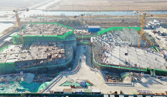 開工以來,項目團隊以施工為主線,面對結構形式復雜、施工專業較多等困難,從施工整體規劃部署和業主需求出發,選比施工方案,確保方案更具實際性與高效性。在地基施工階段,在優化網絡進度計劃圖的基礎上,項目部抽調骨干員工組建攻堅小組,先后解決了樁基管樁、高支模施工等技術難題,進一步壓實了責任鏈條、建立起工作閉環,為后續主體結構施工奠定了堅實基礎。