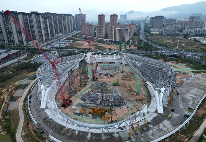12月2日,中國十七冶房屋分公司承建的福建漳浦縣文體中心體育場項目東西側屋蓋鋼結構卸載成功,鋼結構主體順利完成,為后續金屬屋面、膜結構及幕墻施工奠定堅實基礎。