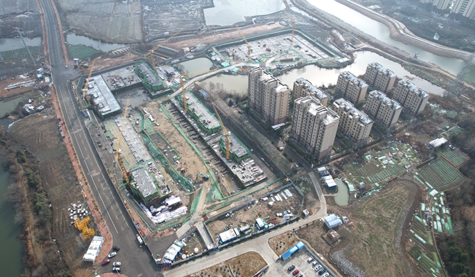 在春風細雨中,中國十七冶房屋分公司馬鞍山經開區章塘二期安置房的建設者們身著雨衣堅守崗位,掀起新年伊始的開工熱潮。