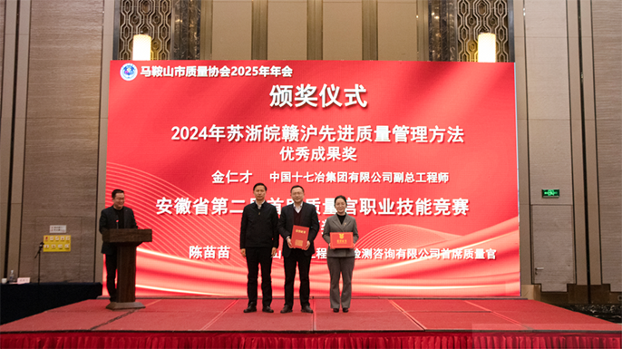 近日,江蘇、浙江、安徽、江西、上海“四省一市”市場監管局聯合發布2024年“蘇浙皖贛滬先進質量管理辦法”獎,中國十七冶申報的質量管理方法《“多維度立體式”質量管控模式》繼2024年入選“蘇浙皖贛滬先進質量管理方法”優秀案例后,首次榮獲該獎項。1月15日,在馬鞍山市質量協會2025年年會上,馬鞍山市副市長左年文為公司頒發了榮譽證書,公司副總工程師、技術質量管理部部長金仁才參加會議。