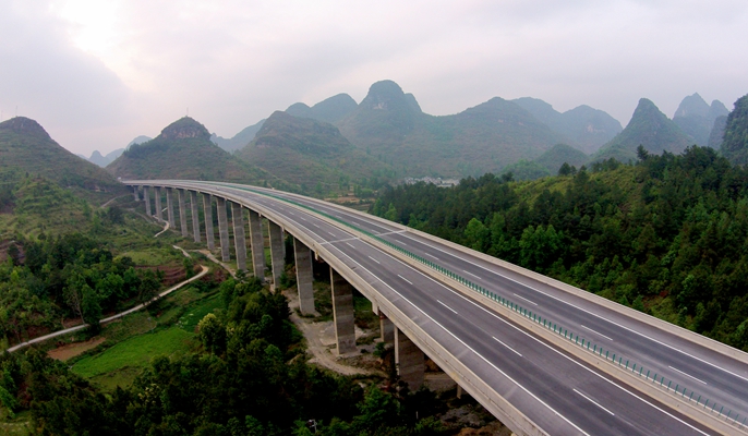 廣西百色至靖西高速公路項目于201011月開工建設,201412月建成通車。廣西百靖高速公路工程起于田陽縣那坡鎮那音村接南百高速,止于靖西縣新靖鎮亮表村接廣西高速公路網規劃中的靖西至龍邦公路,全長98公里,主線采用雙向四車道高速公路標準修建,設計行車速度100公里/小時,路基寬度為26米。中國十七冶集團承建其路基5標段和路面1標段。路基5標項目工程主要包括橋梁工程5座全長1264米,隧道工程1座全長412米,路基土石方工程挖方88.26萬立方米、填方73.14萬立方米,全長3650米。路面1標施工內容主要包括主線25.615公里瀝青路面、坡洪連接線12.697公里混凝土路面及其部分附屬工程施工。該工程還積極推廣應用了建筑業10項新技術中的7大項、11個子項,獲得中冶建筑新技術應用示范工程