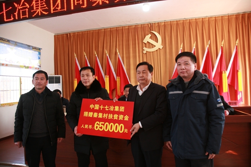 1月27日上午,中國十七冶集團董事長、黨委書記喻世功,紀委書記、副總經理蔡進到公司定點扶貧村滁州市定遠縣蔣集鎮秦集村參加秦集村黨員群眾大會暨扶貧款捐贈活動,并走訪慰問貧困戶。公司黨委工作部部長楊紹鳳代表十七冶向秦集村送去了65萬元扶貧款,支持該村扶貧產業發展。