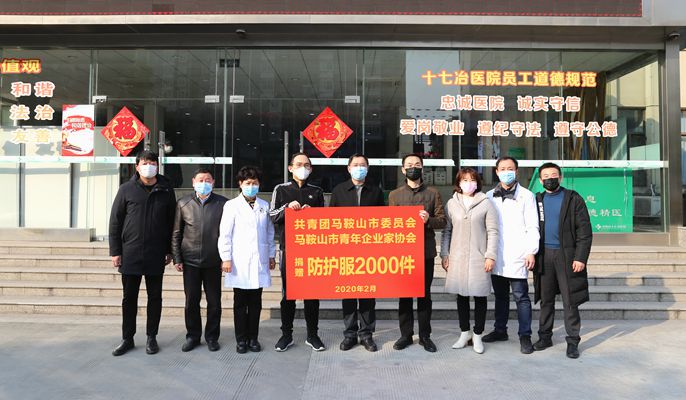 2月5日下午,馬鞍山團市委書記馬鑫帶領部分工作人員,將2000套三級防護服捐贈給十七冶醫院,幫助醫院緩解了燃眉之急。