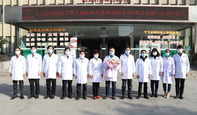 2月22日上午,十七冶醫院重癥醫學科副主任周義東援助馬鞍山市第四人民醫院抗擊新型冠狀病毒肺炎疫情。這是十七冶醫院第十位援外抗擊疫情的勇士。醫院黨政領導班子,相關部門負責人為周義東送行。