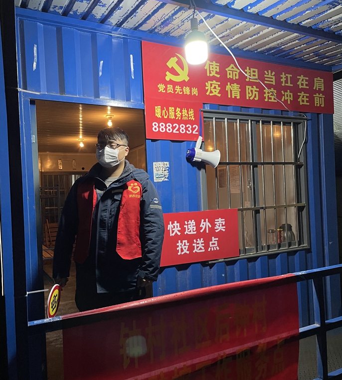 志愿者團(tuán)隊(duì)聞令而動(dòng),到崗后迅速進(jìn)入工作狀態(tài),參與體溫監(jiān)測(cè)、通行證檢測(cè)、卡點(diǎn)值守等各項(xiàng)疫情防控工作,每天16小時(shí)2班倒,輪班輪崗支援社區(qū)防疫工作。志愿者們?cè)谧龊眯^(qū)大門防守工作的同時(shí),向出入小區(qū)居民宣傳防疫相關(guān)知識(shí),測(cè)量體溫,引導(dǎo)居民自覺掃碼登記,辦理居民出入通行證。對(duì)未接種加強(qiáng)針疫苗的居民詳細(xì)登記,動(dòng)員其盡早接種疫苗,確保科學(xué)防疫措施落實(shí)到位。夜晚寒風(fēng)凜冽,晚班執(zhí)勤人員堅(jiān)守到夜里11點(diǎn),大家依舊毫無怨言。在疫情防控工作中,志愿者團(tuán)隊(duì)不懼寒冷,各司其職、各盡其責(zé),堅(jiān)守在執(zhí)勤崗位,與“大白”共同戰(zhàn)一線,為社區(qū)疫情防控筑牢防線。