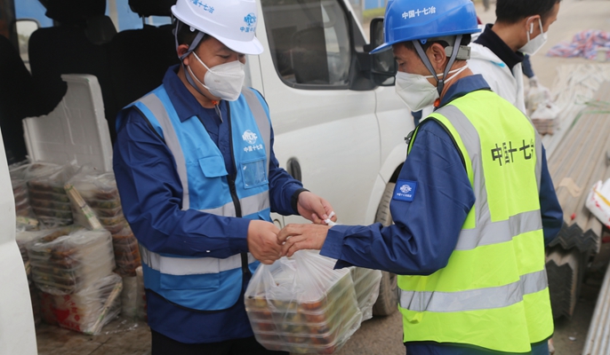 在一遍遍的溝通對接中,賀中國不厭其煩,以認真負責的態度和主動擔當的作為,保障了每位員工的就餐大事。每次發放餐食時,賀中國同各班組負責人將一提提熱氣騰騰的盒飯送到工人手中。看到工人們滿意的笑容,他的臉上也是露出了由衷的笑容。在當前防疫特殊時期,正是像賀中國這樣的一位位后勤工作者,以辛勤的付出保障著工人們的健康,為項目的正常運轉提供著可靠有力的支撐。