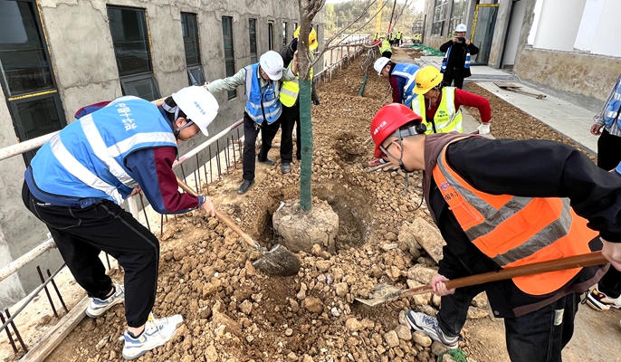 12日上午,漢中市“兩院一中心”項(xiàng)目團(tuán)支部組織全體團(tuán)員青年開展“植下一棵樹,收獲萬點(diǎn)綠”主題植樹活動。項(xiàng)目全體團(tuán)員青年手持鐵鍬、提著水桶,秩序井然地來到項(xiàng)目現(xiàn)場綠地,揮鍬鏟土、扶樹正苗、澆水培土,合力栽下一棵棵樹苗。大家分工合作,配合默契,扶苗填穴、培土踏實(shí),一絲不茍地完成了一道道工序。栽植的樹苗昂然挺立、錯落有致,展現(xiàn)著蓬勃生機(jī),為項(xiàng)目增添了一抹綠色。