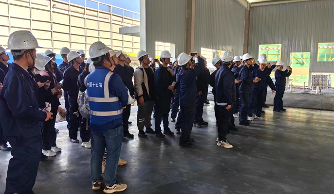 在經過安全教育交底后,項目部相關負責人帶領全體師生來到項目現場,介紹項目概況、質量管理、工序銜接、節點控制等內容,并通過智能講解、BIM動畫演示等方式,解析BIM等創新技術的各個環節,讓學生們更生動系統地了解數字化、信息化賦能下的施工工藝,經驗豐富、干貨滿滿。“紙上得來終覺淺,絕知此事要躬行,今天有幸深入了解十七冶項目團隊建設經驗與成果,希望自己畢業后也能為建設馬鞍山貢獻力量。”一名學生在互動交流環節分享觀摩心得。