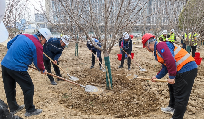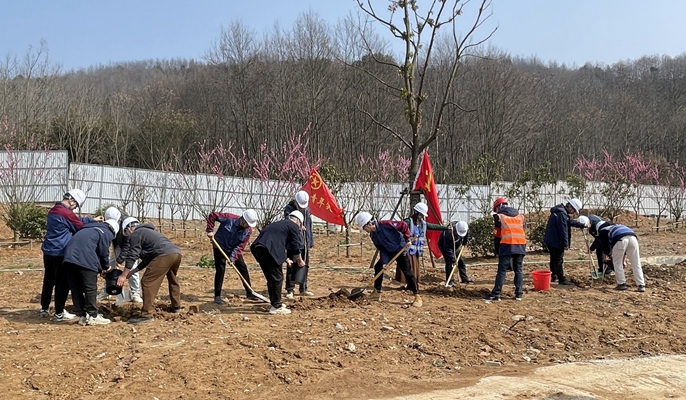 在安徽片區,房屋分公司、設計研究院、城建分公司團委及淮北理想城、蕪湖長江小學、當涂小黃山安置房等項目前往屬地植樹點,揮動鐵鍬,挖掘坑穴,扶正樹苗,填土踩實,搭設支撐,培土圍堰,取水澆灌,一氣呵成。精心栽種的小樹苗迎著和煦的春風昂首挺立,展露出勃勃生機。結束后,大家主動撿拾周圍的垃圾,忙碌的身影、歡樂的笑臉成為春天一道獨特的風景。