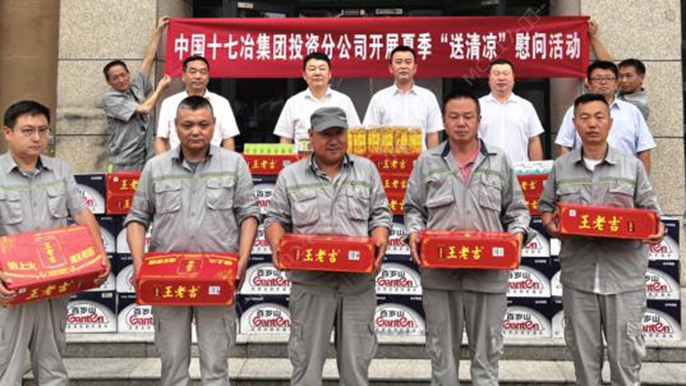 為做好防暑降溫工作,維護職工健康權益,7月15日,中國十七冶投資分公司到西安地區項目公司開展夏送清涼慰問活動。中國十七冶集團總經理助理張韜,副總經濟師楊有誼,投資分公司副總經理余志忠,西安中冶管廊建設管理有限公司總經理黃偉等參加活動。