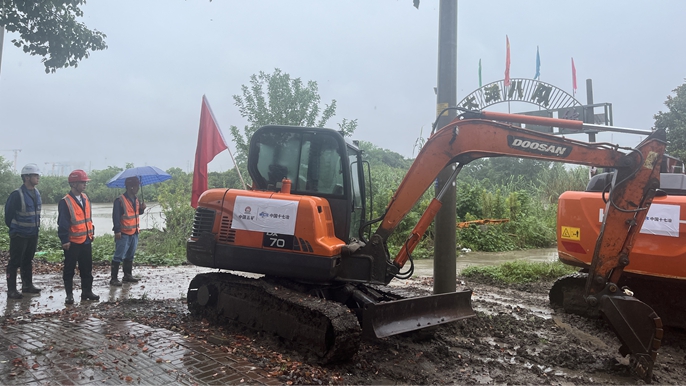 針對近期強降水天氣,項目部第一時間召開防汛專題會,嚴格落實公司、屬地主管部門各項要求,全面排查洪澇隱患、準備應急資源。7月13日,接到屬地政府通知后,項目部立即啟動防汛救災應急預案,下午1時,通過多方渠道調集10余名作業人員、2臺挖掘機及數臺大功率抽水泵,全力配合當地部門防汛工作,用時5小時完成二壩鎮清淤任務,確保區域排水通暢,及時消除安全隱患。
