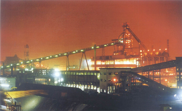 圖為建成投產后的上海一鋼2500m3高爐夜景