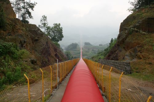 十七冶承建的四川達州海螺水泥輸送廊道工程位于四川省達州市大竹縣石河鎮,地處連綿群山之中,高低落差近百米,長達5.5公里。最高支架40余米,機械設備無法進場吊裝。工程2009年2月開工,2009年10月底竣工。為確保廊道如期貫通,項目部十四個人肩扛手拉,硬是一片一片的完成了高難度的鋼桁架吊裝,確保了廊道的全線貫通。