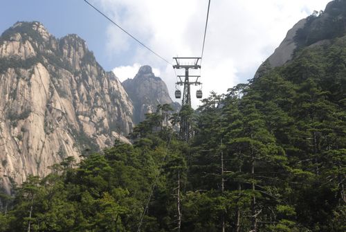 黃山玉屏索道工程下站設在慈光閣,上站設在玉屏樓,全長