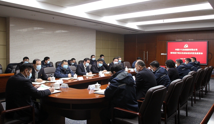 1月22日下午,中國十七冶集團黨委召開2020年度領導班子民主生活會征求意見座談會。公司黨委書記、董事長喻世功主持會議,公司紀委書記、副總經理蔡進,工會副主席、黨委工作部副部長李靜以及各條戰線上的黨員群眾代表參加了座談會。